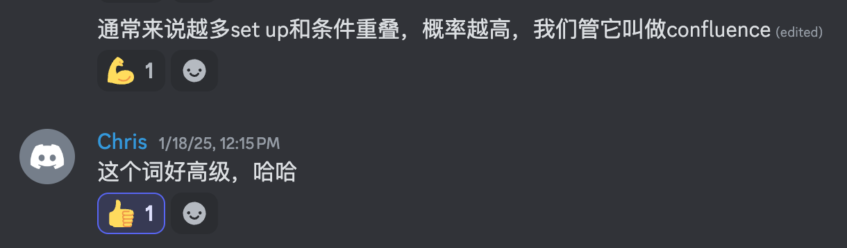 我喜欢多个条件重叠,这会告诉我可以有更多的信心。之前我在群里和大家分享过,这个术语也叫做confluence