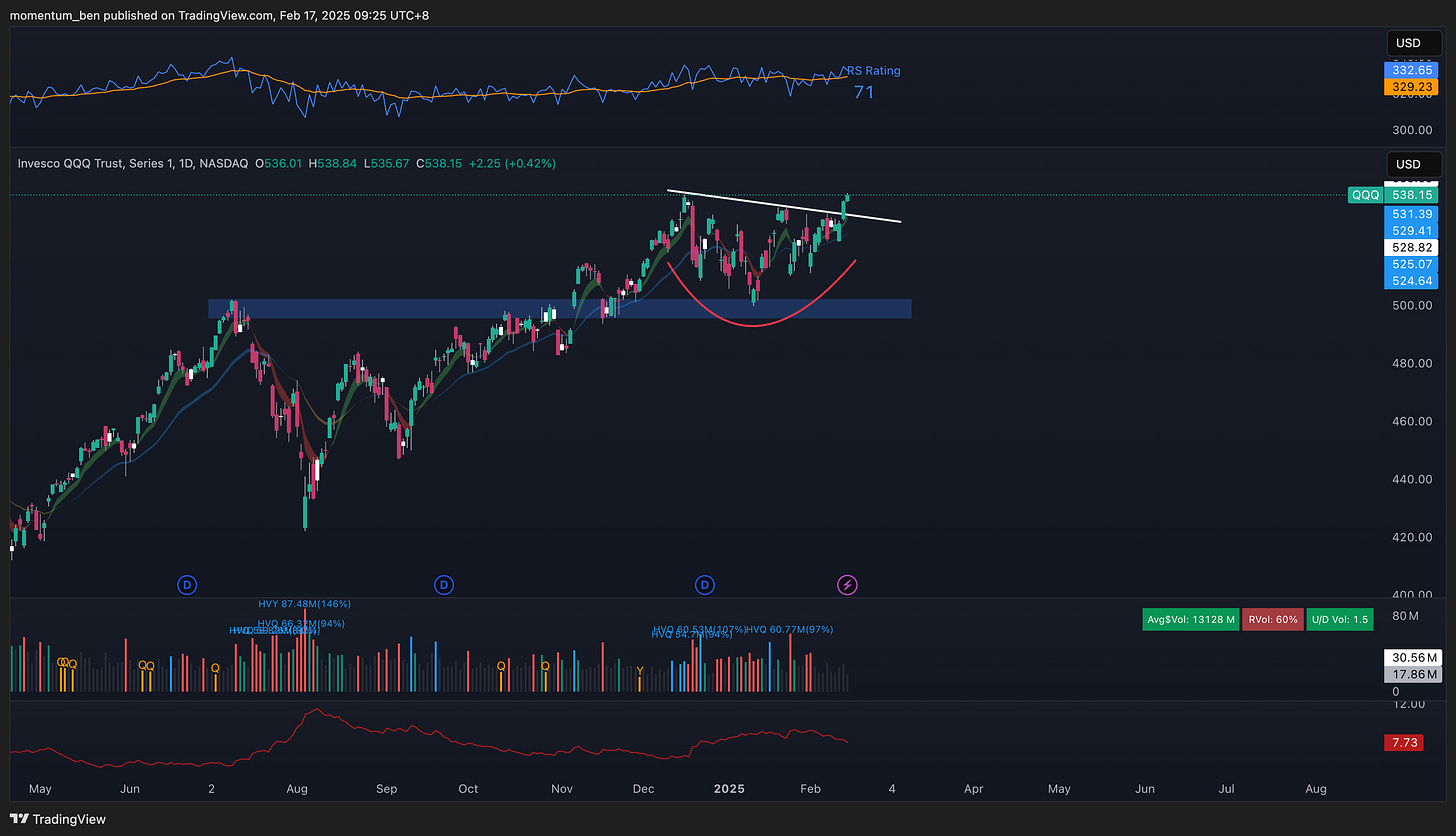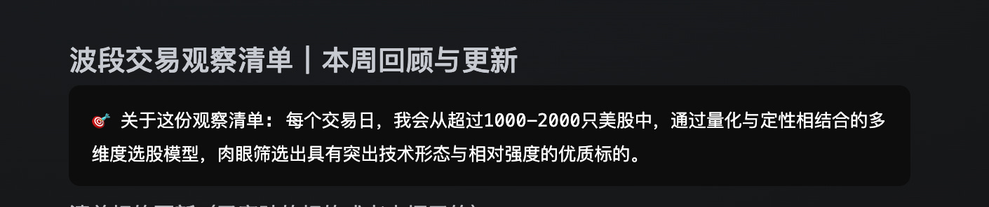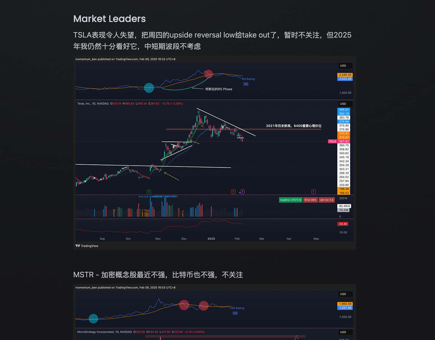 我定义leaders为当下强势板块里最强的且流动性最好的龙头标的。这些标的通常有很高的dollar volume,备受机构关注。比如2023-2024年的半导体,它的leaders就是NVDA, SMCI。每个板块都有1-3支top的强势股我们可以去focus
